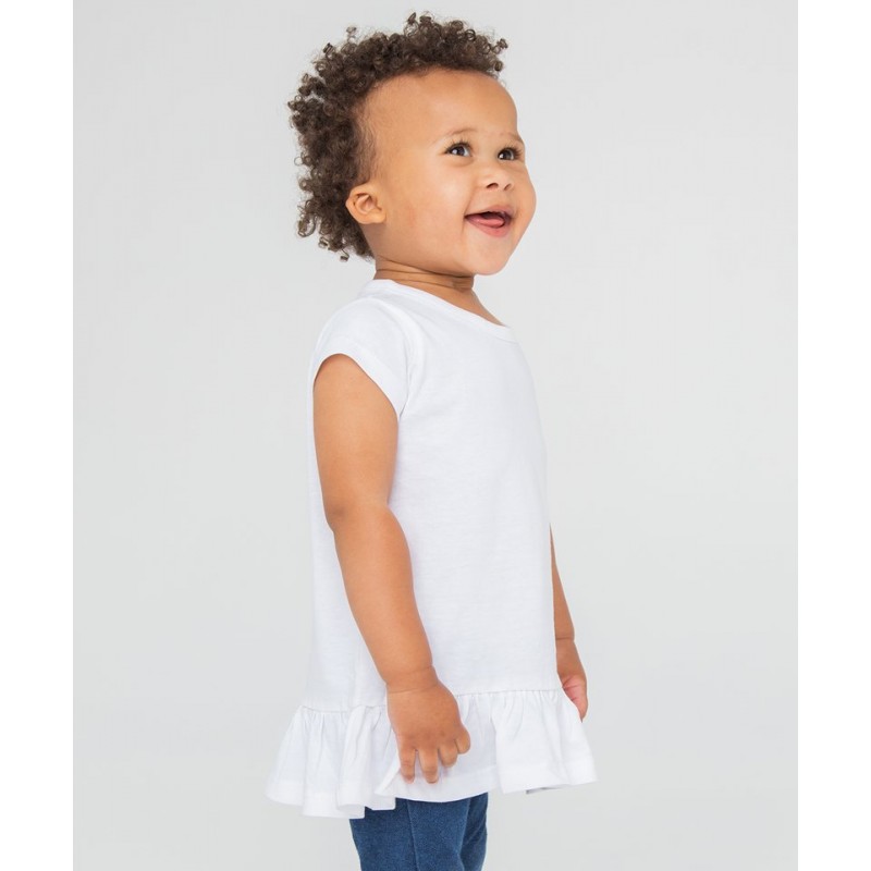 The playful girl's frill t-shirt is perfect for sublimation printing and embroidery with the tag-free feature allowing for easy rebranding.