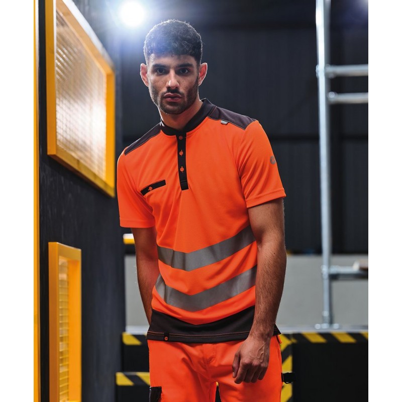 | Features | 100% quick-dry polyester piqué fabric. Conforms to EN ISO 20471:2013 +A1:2016 Class 1. Ribbed collar with 3-button placket. 1 chest pocket. Orange colourway also conforms to RIS-3279/TOM. |