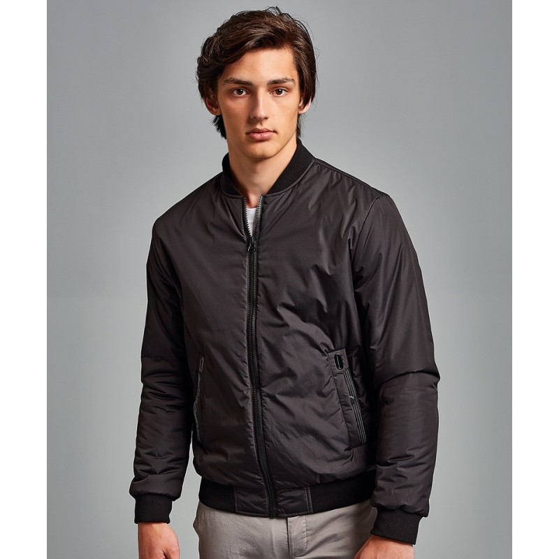 | Features | Tonal fashion coil zip on centre front with signature zip puller. Insulated body and sleeves. 100gsm lightweight polyester fill. Fully-lined in tonal polyester. Bomber style collar. Welt pockets with rubberised stud opening, striped grosgrain trim with rectangular eyelet. Tonal elasticated cuffs and hem. Internal double jet zipped pocket. Internal zipped opening for embroidery access. |