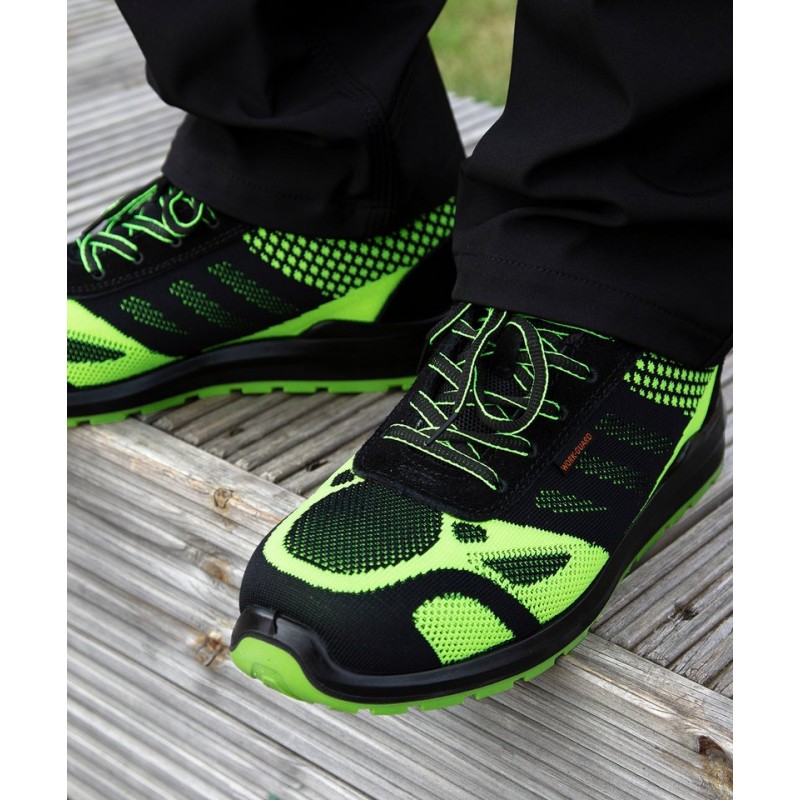 Unisex fit fly knit safety shoes are lightweight and breathable, providing agile formfitting comfort to move around safely, ideal for a warehouse environment. Conforms to EN 20345:2011 SRA SB.