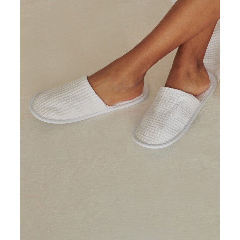 | Features | Waffle fabric mule slippers. Closed toe. Matches TC086 waffle robe. |