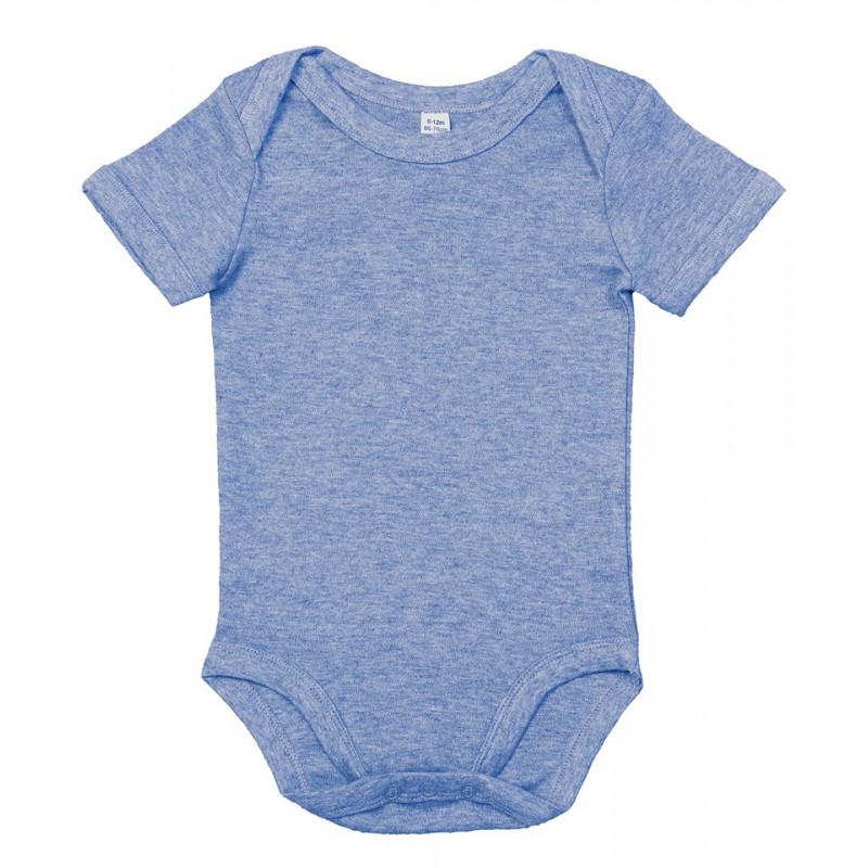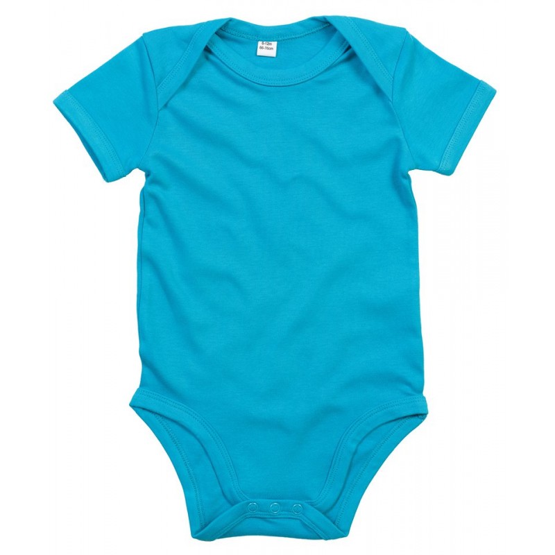 Super soft baby bodysuit with envelope style neckline, binding at edges for shape retention and nickel-free poppers at legs for ease of dressing