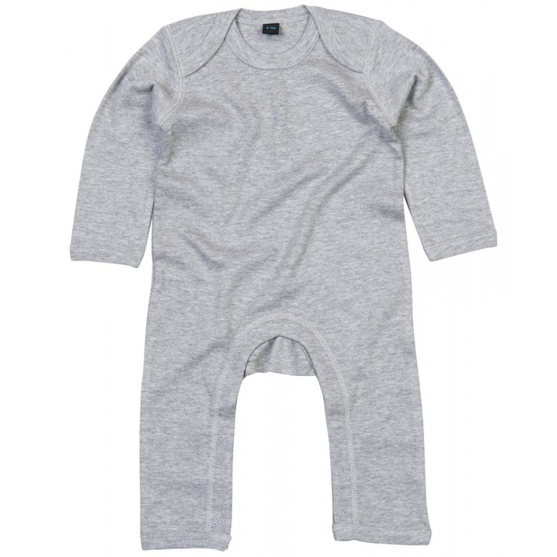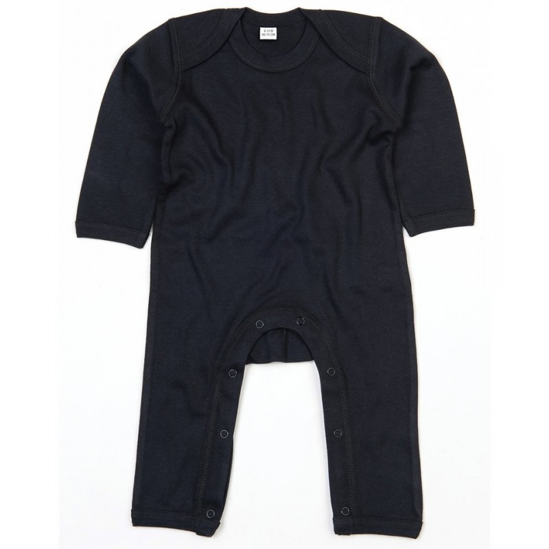 | Features | Long sleeved, full body romper suit. Envelope neck opening. Binding at cuffs, ankles and neck. Self colour nickel free poppers at leg. Neutral neck label. |