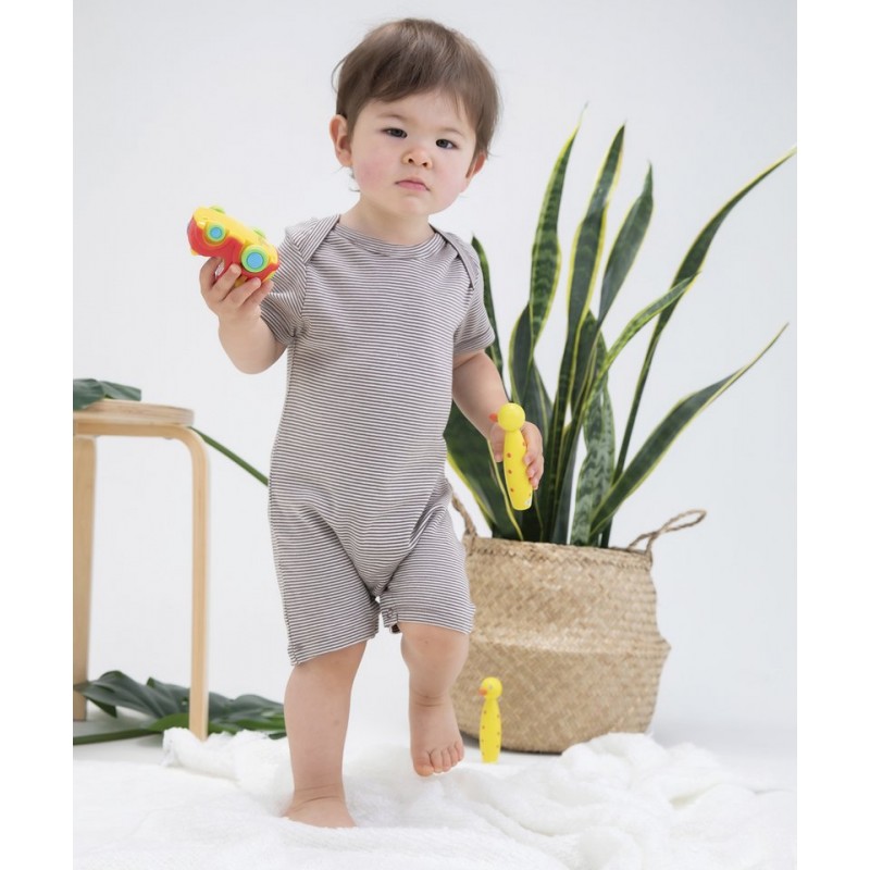 | Features | Soft and stretchy fabric. Yarn-dyed narrow stripes. Striped envelope neckline. Poppers at crotch for ease of dressing. Shorts-style leg length. Tear-off label. |