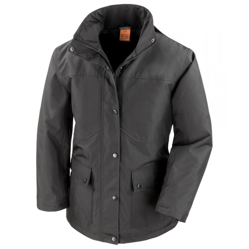 Features Front 2-way zip fastening. Stud closing storm flap. Concealed fold-away zip-off adjustable hood. Adjustable shockcord hem. Deep front flat stitch pockets with stud closers, inside chest pocket with internal cable access, external chest pocket. Underarm mesh eyelets. Fully taped seams. Inner ribbed cuff. Shaped waist. Unique foil based insulation increases warmth without bulk and reduces body heat loss. Classic styling. Generous shaped fit for over suit wear. Strong and tough looking. Breathable 2000g, waterproof 2000mm, windproof.Decoration Guidelines:Decorating methods: Embroidery. Decorators access point: Inside lower back & internal left chest zip