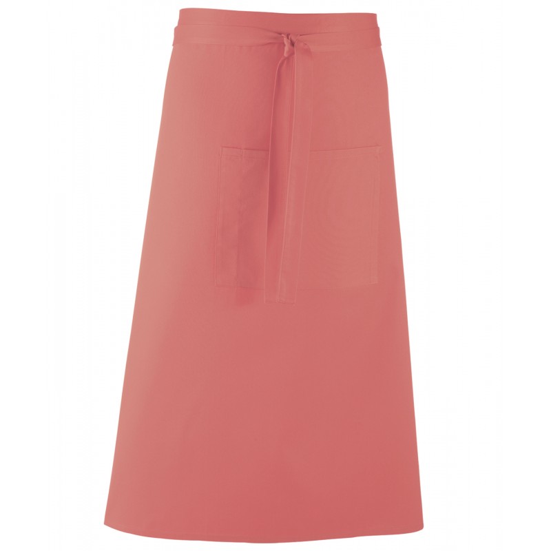 A bar apron that falls to a length of 80cm offering the wearer maximum coverage. This apron comes in 28 colours and is part of the 'Colours Collection' from Premier. To the centre of the apron is a useful centre pocket for carrying tablet devices, together with a combined pen compartment.