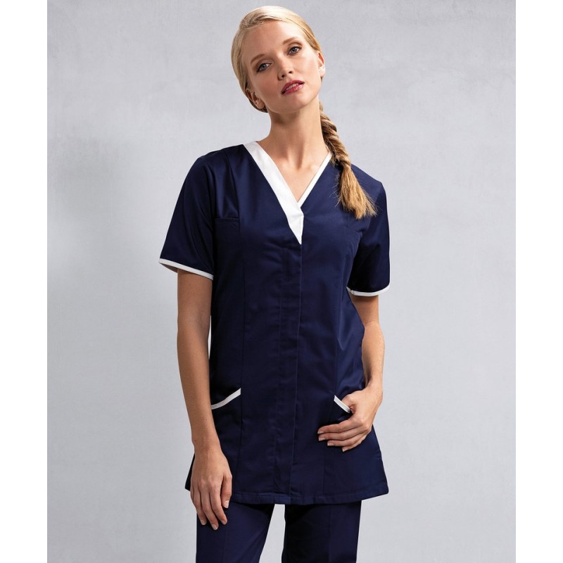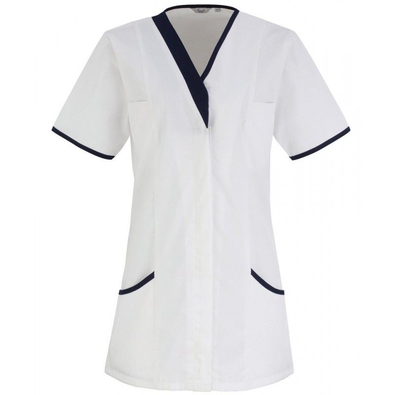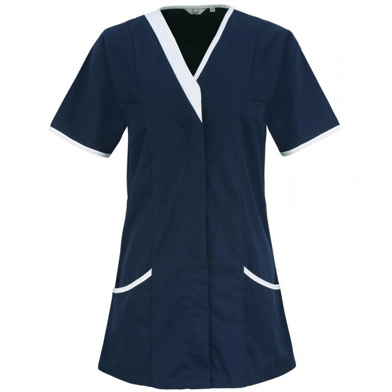 | Features | A practical and very stylish addition to our healthcare range, the "Daisy" Tunic offers a V-neck styling with contrast trimming. Designed with a feminine fit in mind, the "Daisy" features side and back pleats and useful curved side pockets, again featuring a piped contrast edging. |