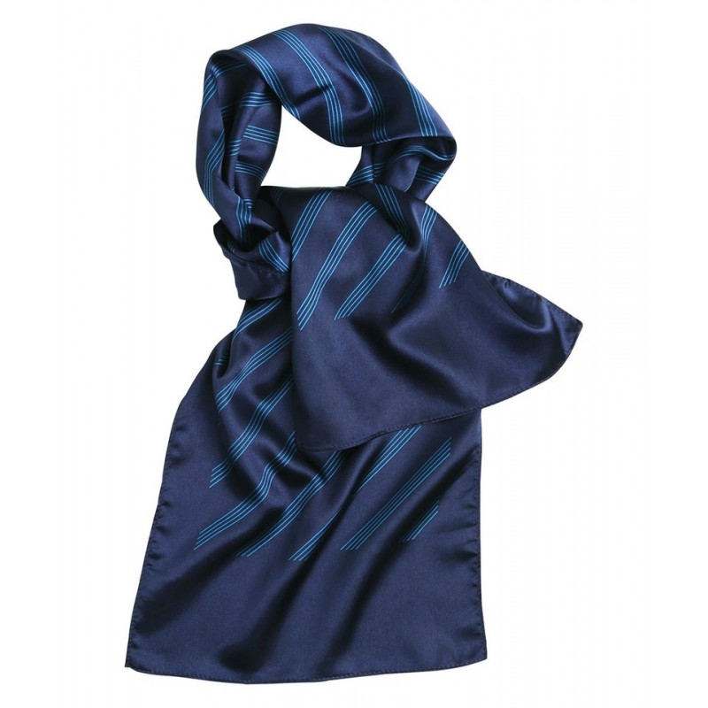 | Features | A satin-feel ladies scarf that can be worn on the neckline in a number of different ways. There is a pattern of narrow stripes along the length of the scarf in contrasting colours. |