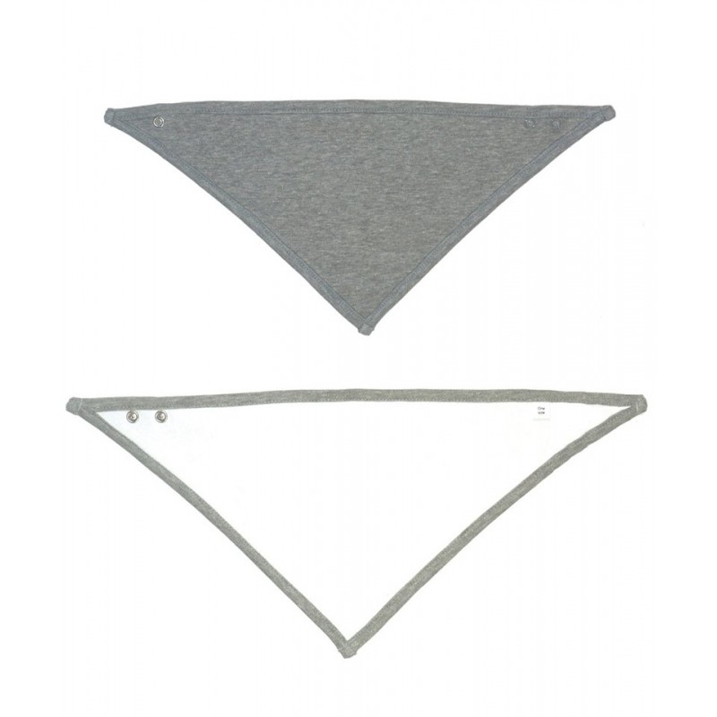 Features Reversible bandana bib. One-side with contrast binding. One-side solid colour. Two-position pop fasteners at back neck. Binding at edge for shape retention. Tear-off label.