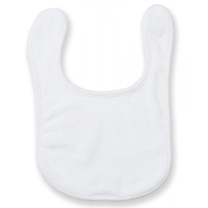 Bib with contrast binding detail. Double fabric front. Hook and loop fastening at back neck.