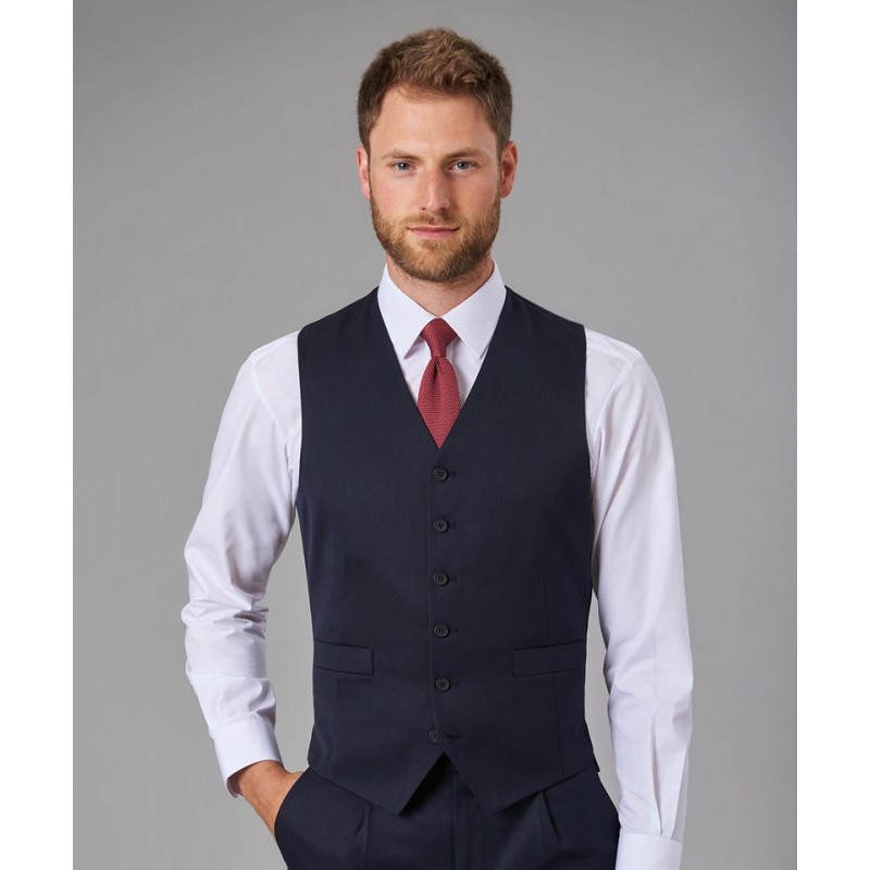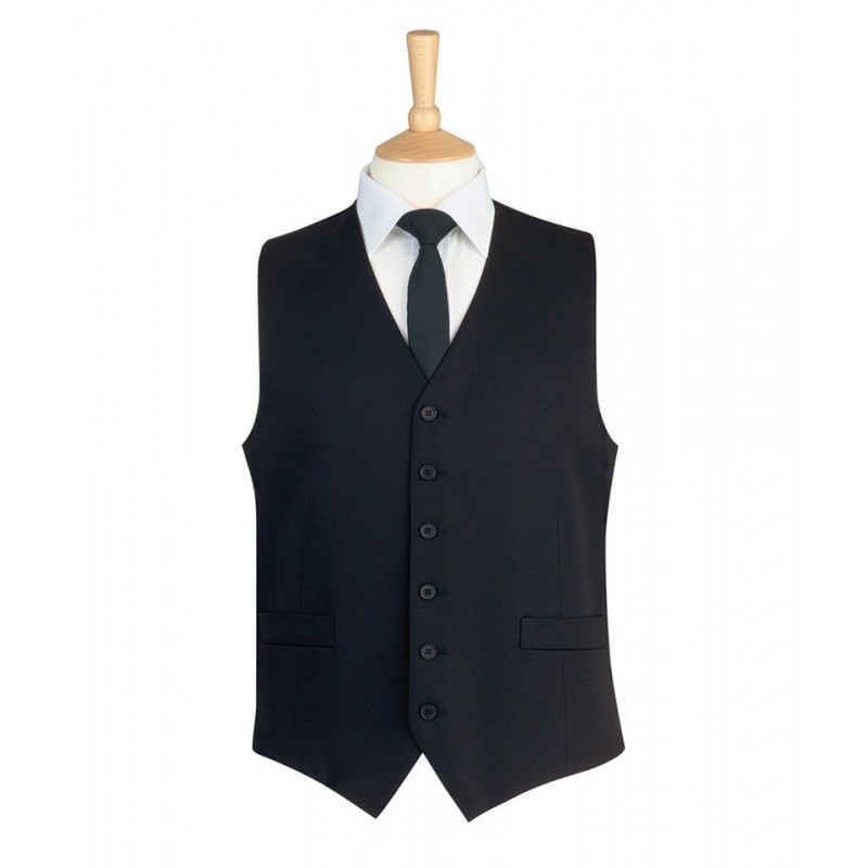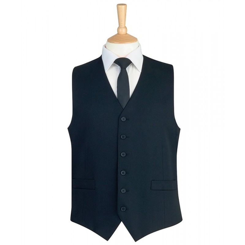Features Cloth backed waistcoat with adjuster. 6 button front. 2 welt pockets. Machine washable.