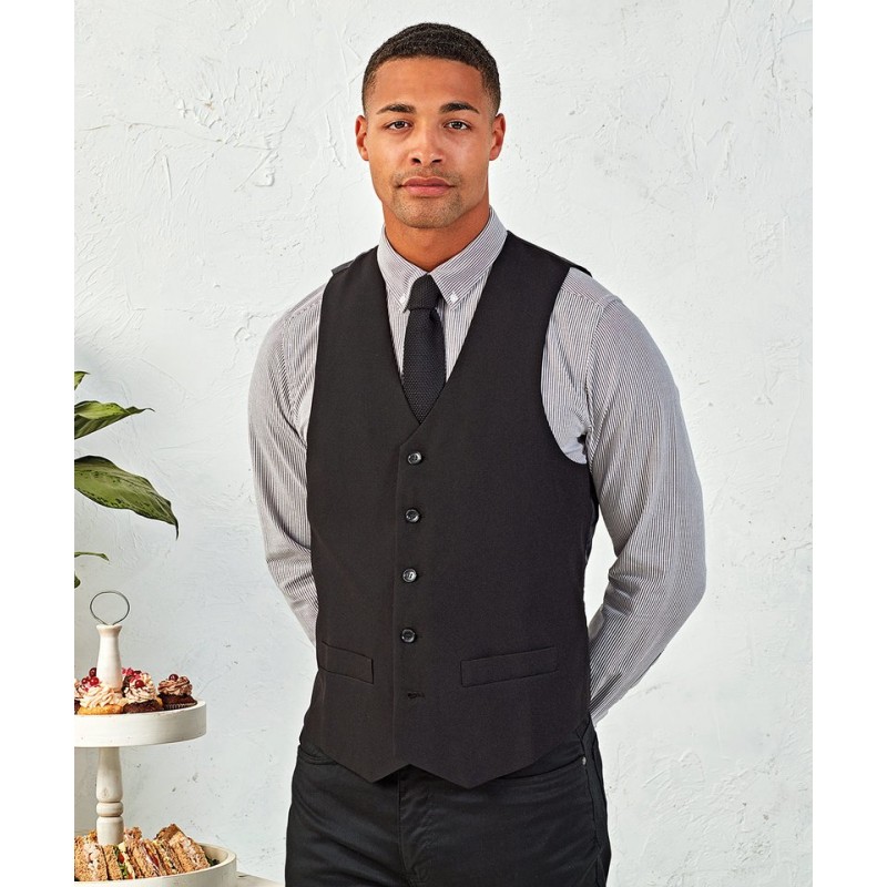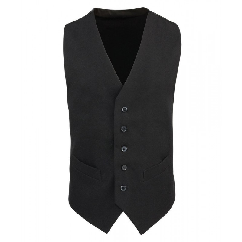 A men's waistcoat with five buttons and two functional watch pockets makes for a really stylish piece of hospitalitywear. This waistcoat is fully lined and comes with a satin back where there is a buckle adjuster to for a more fitted appearance.